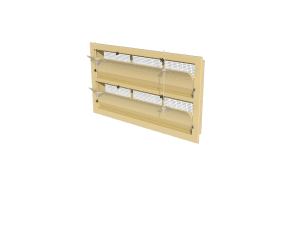 Deze tunnel unit is opgebouwd uit twee enkele 6000-VFG inlaten. Deze versie is uitgerust met een gebogen binnenklep die de lucht naar boven leidt bij minimale ventilatie. Na een opening van meer dan 35% zal de lucht ook onder de binnenklep stromen. Deze unit wordt bediend met twee centrale armen per klep, die weer verbonden zijn met de andere binnenkleppen.