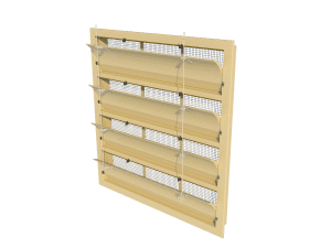 Deze tunnel unit is opgebouwd uit vier enkele 6000-VFG inlaten. Deze versie is uitgerust met een gebogen binnenklep die de lucht naar boven leidt bij minimale ventilatie. Na een opening van meer dan 35% zal de lucht ook onder de binnenklep stromen. Deze unit wordt bediend met twee centrale armen per klep, die weer verbonden zijn met de andere binnenkleppen.